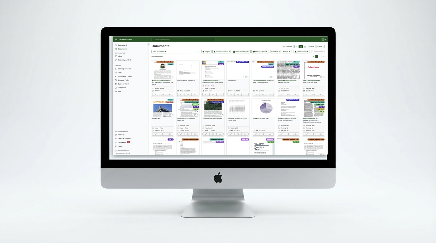 Paperless-ngx ist eine leistungsstarke Open-Source-Lösung für digitales Dokumentenmanagement. Die Software bildet das Herzstück und bietet automatische Texterkennung (OCR) für gescannte Dokumente, Volltextsuche über den gesamten Bestand in Sekunden, flexible Kategorisierung durch Tags und Dokumententypen sowie sichere Speicherung auf Ihrer eigenen Infrastruktur – Ihre Daten bleiben bei Ihnen.